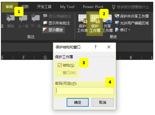 确保工作簿内的工作表不被移动、删除、隐藏、解除隐藏或变更名称(这些元素属于工作簿的结构), 而且也不能插入新的工作表。