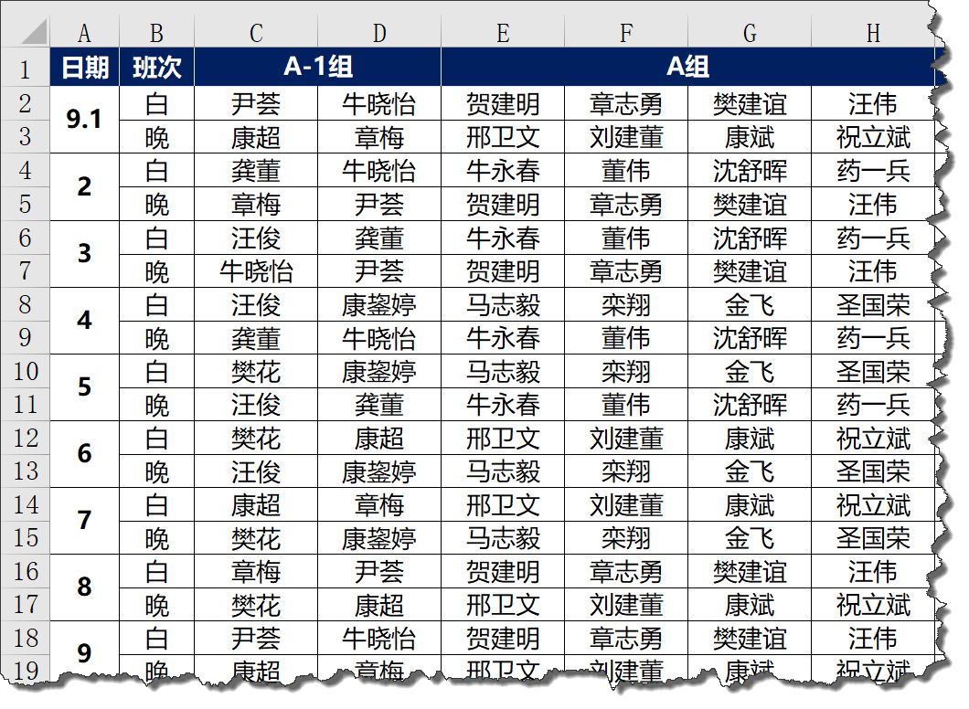 如下图,是某公司员工值班表的记录: