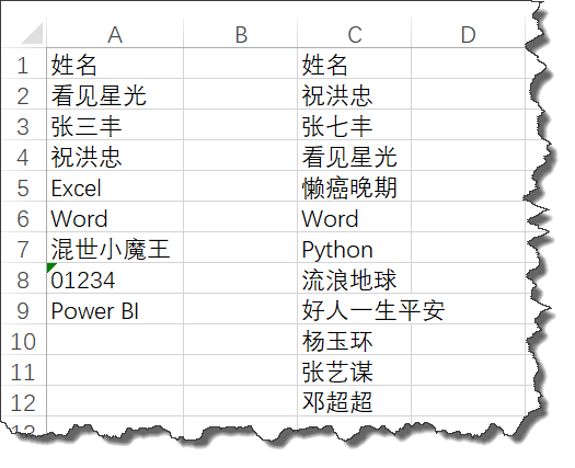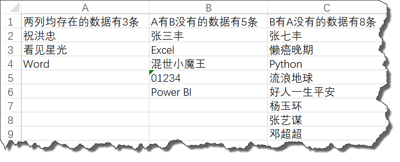 如上图所示,查询A列和C列的数据,提取出相同值、A列存在C列不存在的值、A列不存在C列存在的值……