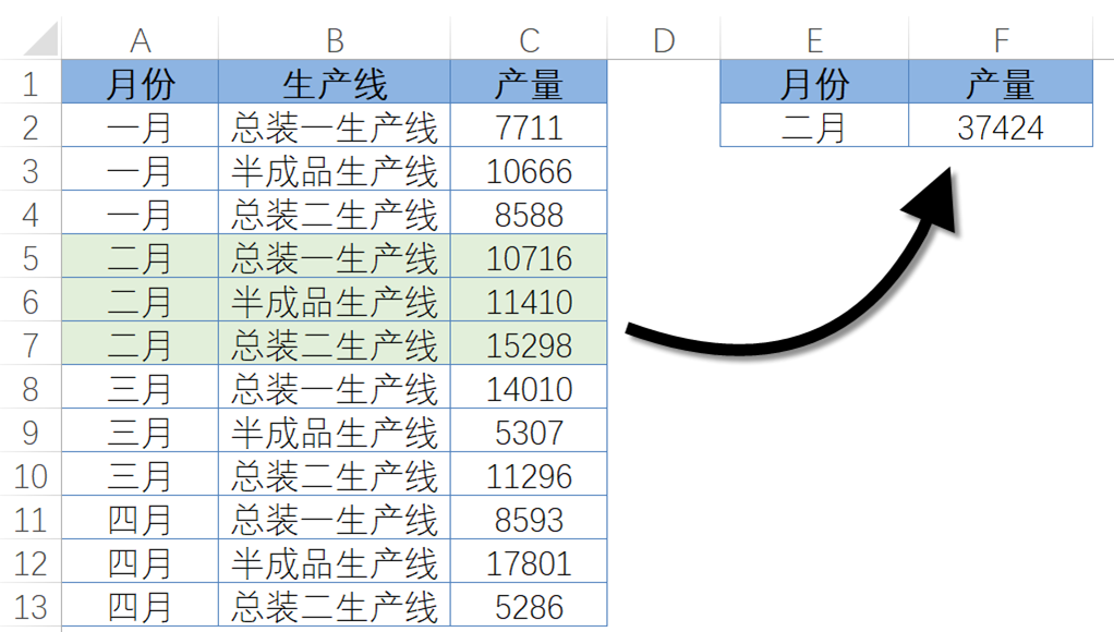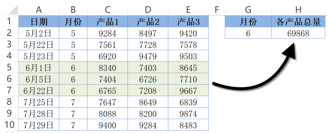 小伙伴们好啊,今天咱们来学习SUMPRODUCT函数的一些典型用法:常规条件求和如下图所示,要根据E2单元格的月份,统计该月份的产量。F2单元格公式为:=SUMPRODUCT((A2:A13=E2)*C2:C13)带通配符的求和如下图所示,要根据B列的手机型号,统计带有“华为”字样的手机销量。E2单元格公式为:=SUMPRODUCT(ISNUMBER(FIND(“华为”,B2:B10))*C2:C10)根据指定月份求和如下图所示,要根据E列的月份,统计该月份对应的报废数量。F2输入以下公式下拉:=SUMPRODUCT((MONTH(A$2:A$11)=E2)*C$2:C$11)多列求和如下图所示,要根据G列的月份,统计该月份所有产品总量。H2单元格公式为:=SUMPRODUCT((B2:B10=G2)*C2:E10)判断文本型数字如下图所示,要根据A列的大类编码,统计该编码所有产品总量。F2单元格公式为:=SUMPRODUCT((A2:A10=E2)*C2:C10)好了,关于SUMPRODUCT的典型用法今天就分享这些,祝各位小伙伴一天好心情!图文制作:祝洪忠 声明:本站所有文章,如无特殊说明或标注,均为本站原创发布。任何个人或组织,在未征得本站同意时,禁止复制、盗用、采集、发布本站内容到任何网站、书籍等各类媒体平台。如若本站内容侵犯了原著者的合法权益,可联系我们进行处理。