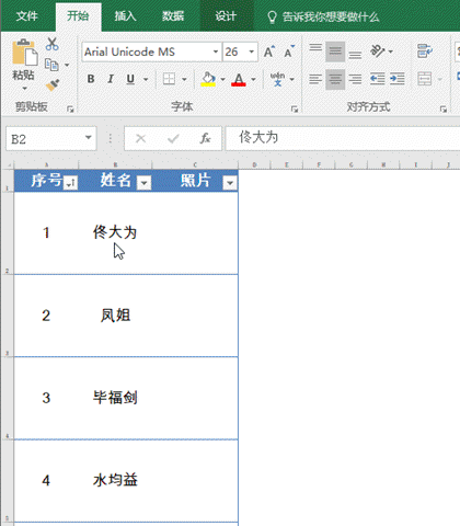 选中最上层的照片,拖动到最后一个姓名的对应位置。