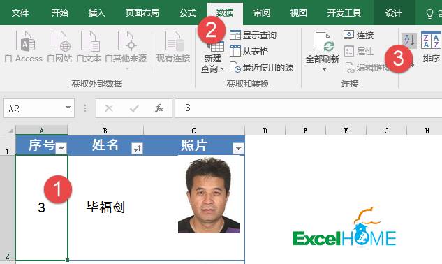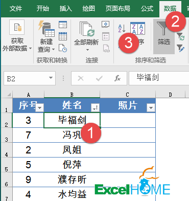 单击姓名所在列的任意单元格,在【数据】选项卡下点击【升序】按钮: