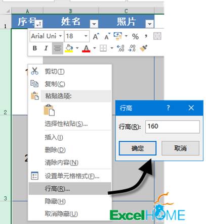 然后设置工作表的行高和列宽。设置的行高可以比实际图片高度再大一些。