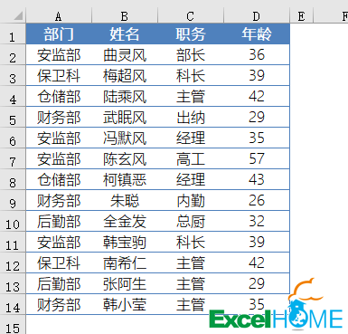 如下图所示,是某公司各部门的部分员工信息:
