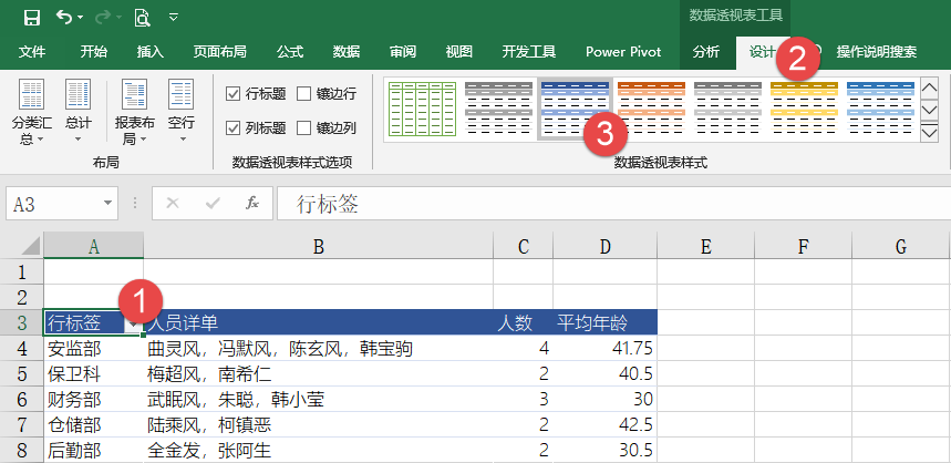 最后单击数据透视表,在【设计】选项卡下选择一种内置的样式效果: