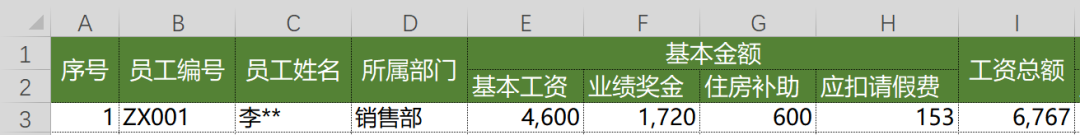 如果是双表头的工资条,就像下面这种,该如何处理呢?