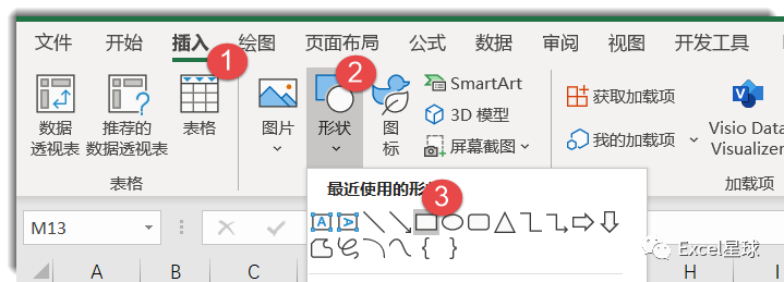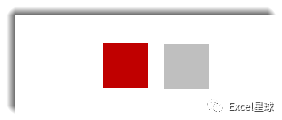 在【插入】选项卡下点击【形状】→【矩形】,在当前工作表绘制2个矩形,设置高度和宽度均为1厘米的正方形,颜色分别填充为深红色和浅灰色,边框线条设置为实线、白色,1磅宽。
