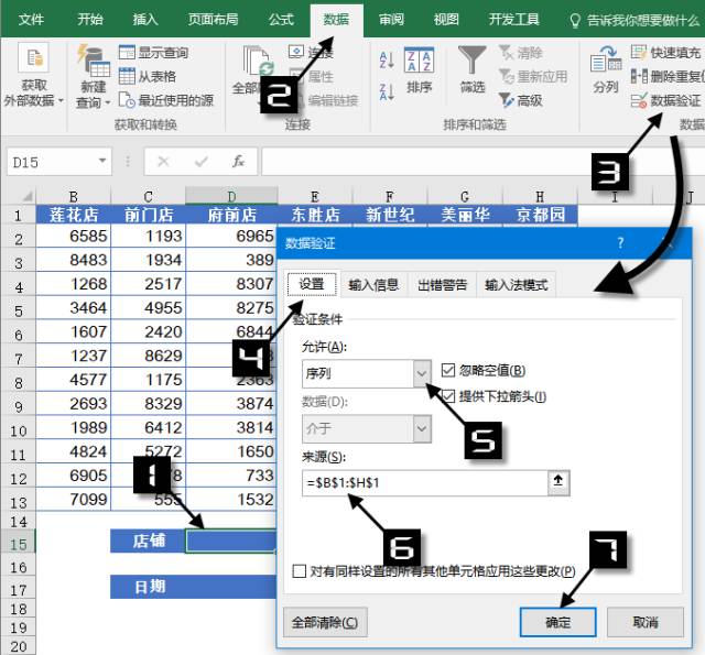 设置完成后,单击D15单元格的下拉按钮,即可从下拉菜单中选择对应的店铺。