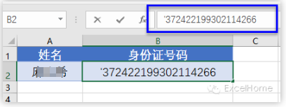 其实解决这个问题的方法很简单,只要在录入身份证时先输入一个半角的单引号“ ‘ ”,问题就解决啦!(该单引号在输入后不会显示出来的)