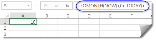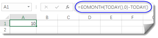 10、=EOMONTH(TODAY(),0)-TODAY()