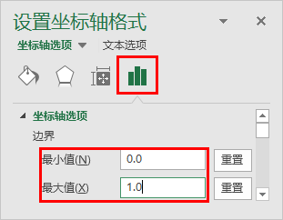 选中图表纵坐标轴,右键“设置坐标轴格式”,设置坐标轴的最大值与最小值。