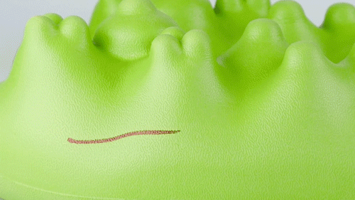 整个小鳄鱼外形还根据人体工程学采取了上半部分稍硬,下半部分稍软的设计。