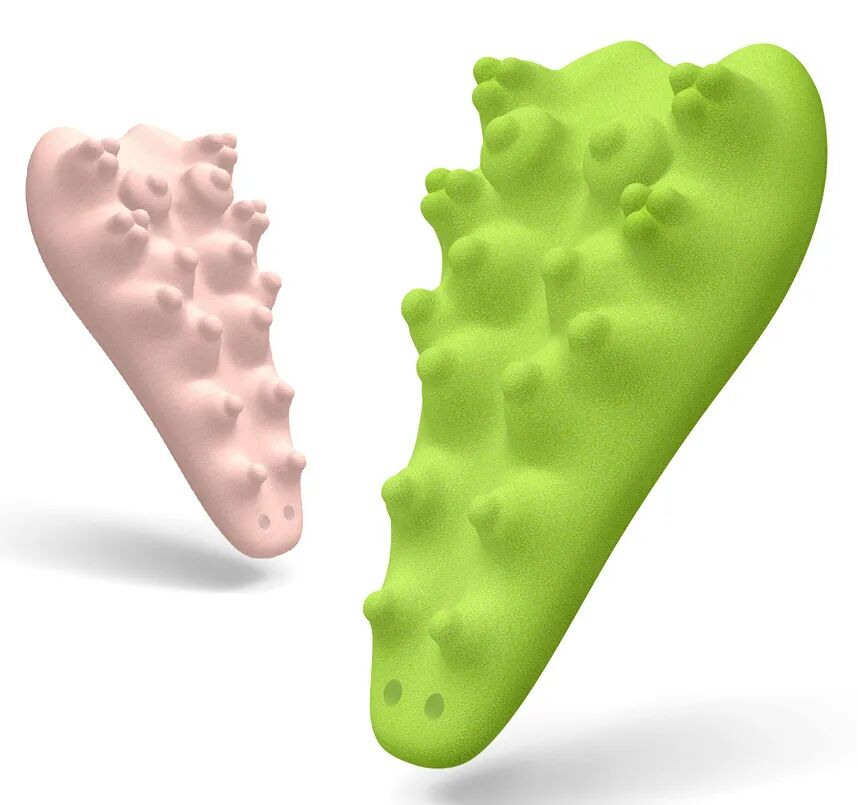 小鳄鱼身上有24个凹凸按摩点,肩、颈、背只要不舒服,在上面靠着滚动就可以按摩劳累了一天的颈椎,释放颈椎压力。