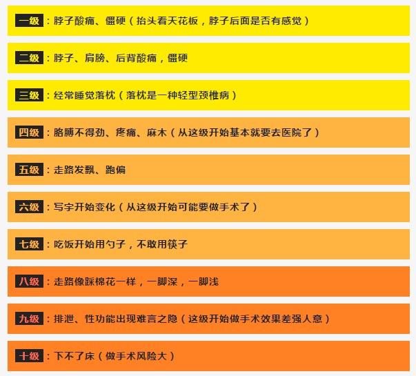 *颈椎病等级表